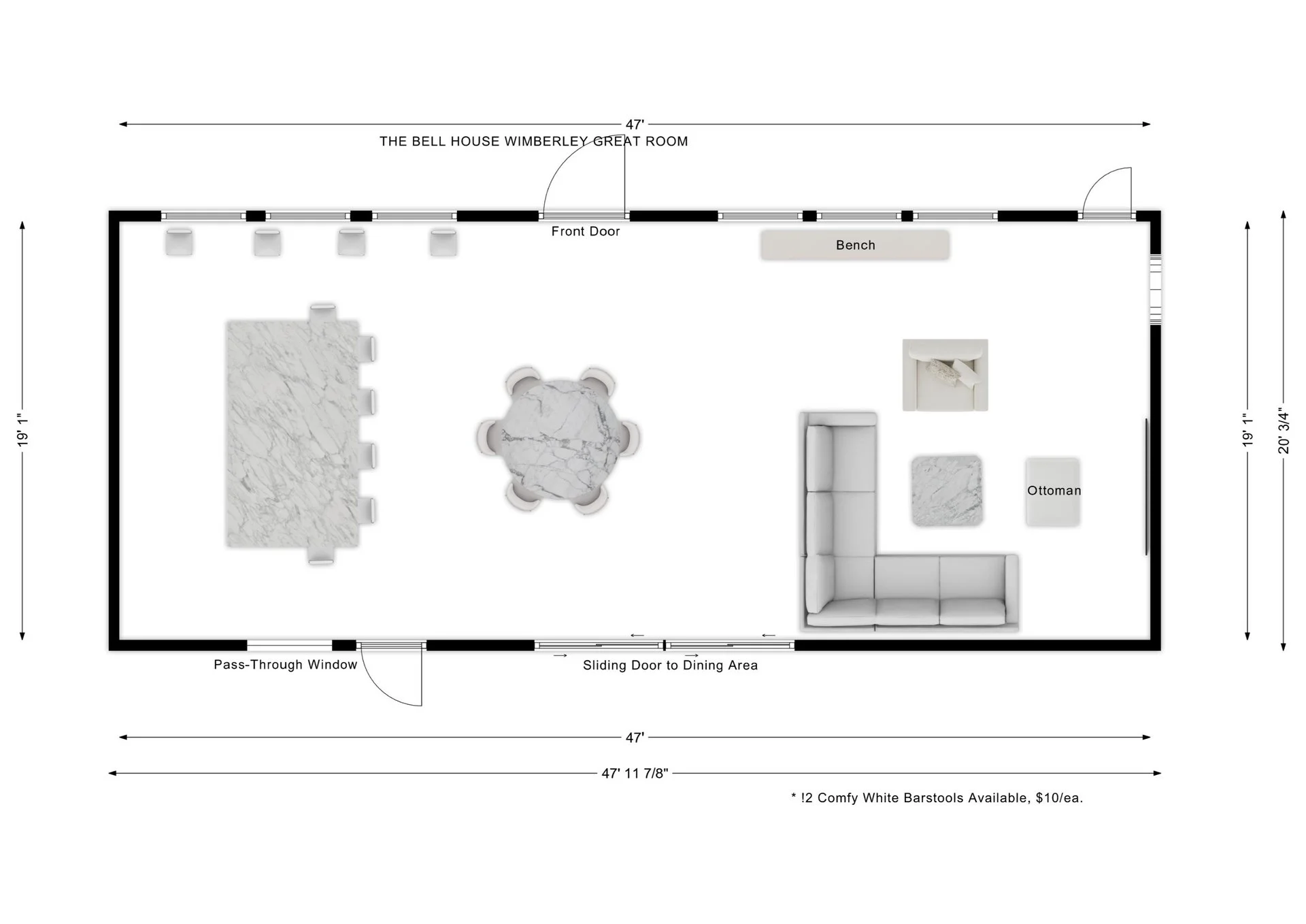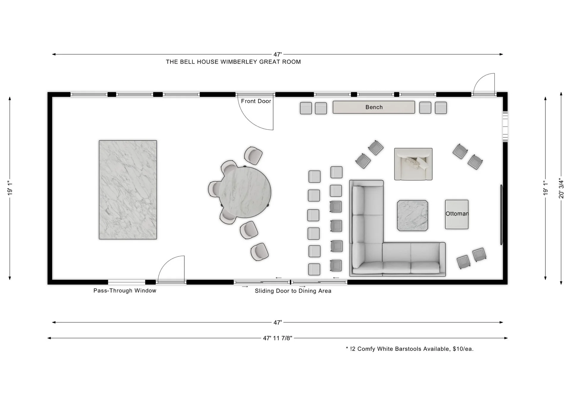 The Bell House Wimberley Great Room Meeting Set-Up Dimensions
